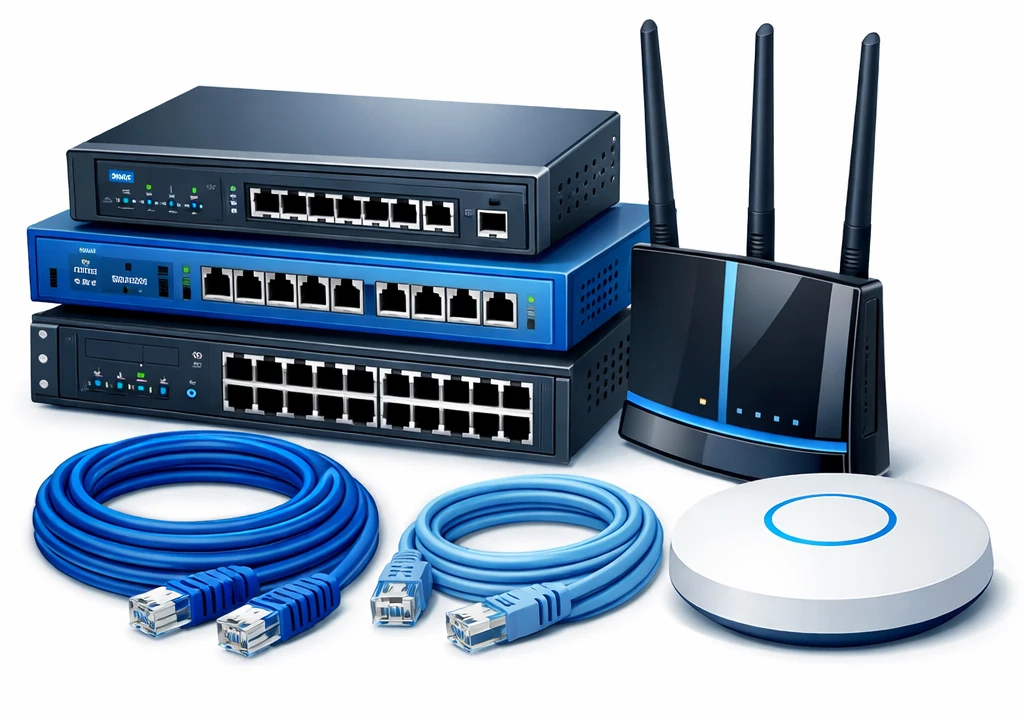 - سوئیچ گیگابیتی (در صورت دوربین/VoIP ترجیحاً PoE)